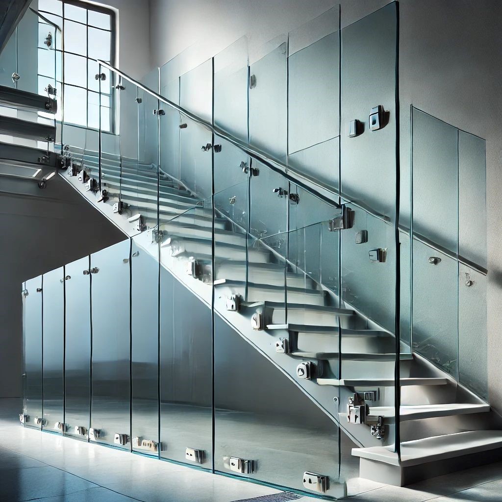 For staircase panels, toughened glass ensures safety considerations with strength, while laminated glass adds extra protection. Customizable designs in clear, frosted, or tinted glass cater to various design styles, enhancing aesthetics and functionality in modern architecture.